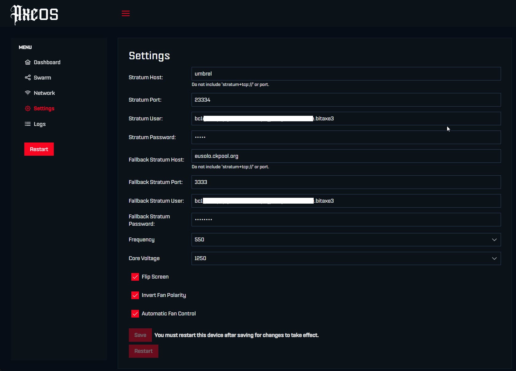 - Stratum Settings (Usually Leave Default)