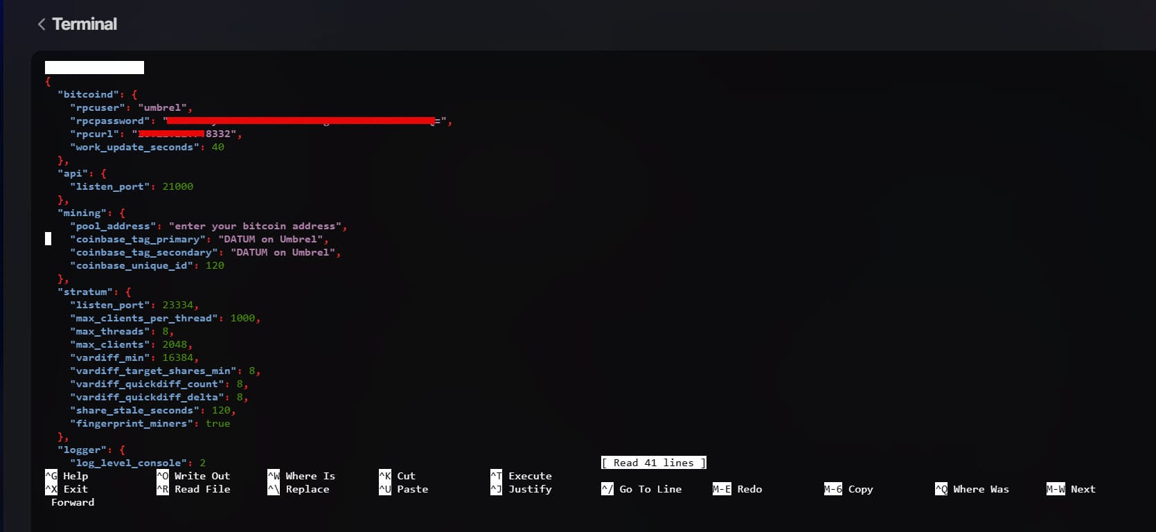 After installing DATUM Gateway from Umbrel’s app store, you’ll need to modify its configuration file to enable solo mining.