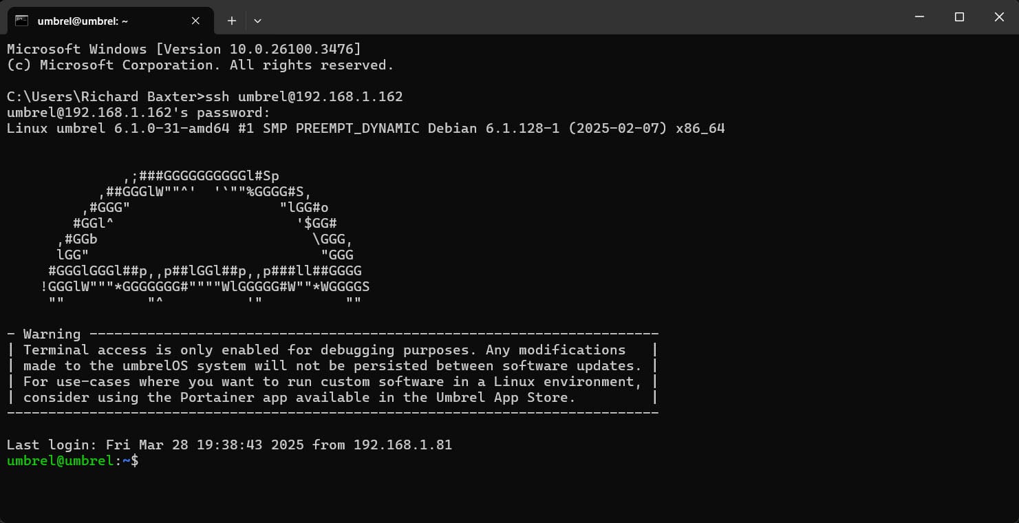 ssh umbrel@192.168.1.162